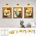 Battery Picture Light 3Pack Gold,Wireless Painting Light with Remote,3 Lighting&Dimmable,Wall Art for Painting Accent Light &Timer for Pictures