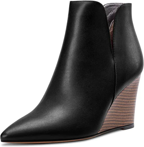 Aachcol Botines de cuña para mujer, botines cortos con punta puntiaguda, tacón alto y grueso, mate, 4 pulgadas