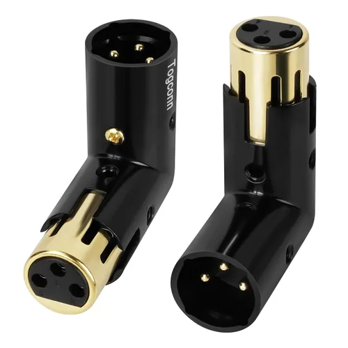 Adaptador XLR de ángulo recto ajustable de 3 pines, conector de metal resistente chapado en oro XLR de 90 grados macho a hembra, extensor en forma de L XLR, orientación ajustable XLR macho/hembra