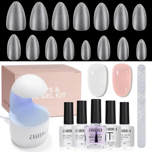 "Listo" en un juego: haz todo con un solo kit Di adiós a la búsqueda tediosa y la lucha por encontrar todo lo que necesitas. El kit de puntas de uñas es más económico. No solo incluye 3 botellas de gel funcional para durabilidad y brillo, sino también puntas de uñas a juego para una mejor forma de la uña. Y viene con 2 botellas de esmalte de uñas en gel gelatinoso para crear hermosos estilos de uñas. Obtén uñas de nivel profesional incluso en tu propia casa con nuestro kit de uñas suaves todo en uno. ¡Ideal para principiantes! Doble protección para "adherencia": para una mejor adherencia, nuestro kit de uñas de gel incluye un deshidratador de preparación de uñas y un pegamento para uñas. El primero puede limpiar la superficie de la uña y eliminar cualquier aceite o desechos que puedan debilitar la unión entre el adhesivo y la uña. Este último está hecho de material de resina natural con fuerte adherencia. Protección doble para garantizar la adhesión de tus uñas, prolongando la duración de tu diseño de uñas. Además, nuestro pegamento para uñas AILLSA se puede usar como capa base, compre uno y obtenga dos, ¡muy conveniente! Todos los colores a juego: el kit de puntas de uñas de gel incluye dos colores de esmalte de gelatina: blanco lechoso y rosa claro, a juego con cualquier atuendo u ocasión. También se pueden combinar dos colores entre sí para crear tu propio estilo de uñas. La profundidad del color depende del color de la base de tu uña y del número de capas que apliques, cuantas menos capas más transparente y cuantas más capas, más vibrante. Agregar la capa superior le dará a tus uñas un acabado protector brillante y evitará que los arañazos dañen tus hermosas uñas. Protector de uñas: ¿te preocupa que tus uñas sean demasiado cortas, demasiado suaves, fáciles de agrietar o de forma irregular? Elige las puntas de uñas AILLSA de cobertura completa, que están hechas de material de gel de alta calidad, con fuerte resistencia y maleabilidad, no se rompen fácilmente. Las puntas de uñas falsas presentan un "borde trasero delgado, borde frontal grueso". El borde trasero más delgado puede hacer que se ajuste mejor a tus uñas. El borde frontal grueso hace que no sea fácil de romper o doblar. Al igual que tus uñas naturales, ¡haz lo que quieras! LÁMPARA DE UÑAS POTENTE - Nuestra lámpara para uñas es pequeña pero potente. Tiene 4 luces LED, que pueden curar rápida y uniformemente el gel UV en solo 1 minuto. El diseño del botón del sensor táctil y el apagado automático después de 60 segundos hacen que sea fácil de usar. Equipado con un cable de alimentación USB, admite múltiples métodos de fuente de alimentación, como bancos de energía y computadoras, lo que te permite crear arte de uñas en cualquier momento y en cualquier lugar. La lámpara de uñas puede funcionar con todos los geles UV. Su tamaño compacto hace que sea fácil de almacenar y empacar para su viaje.