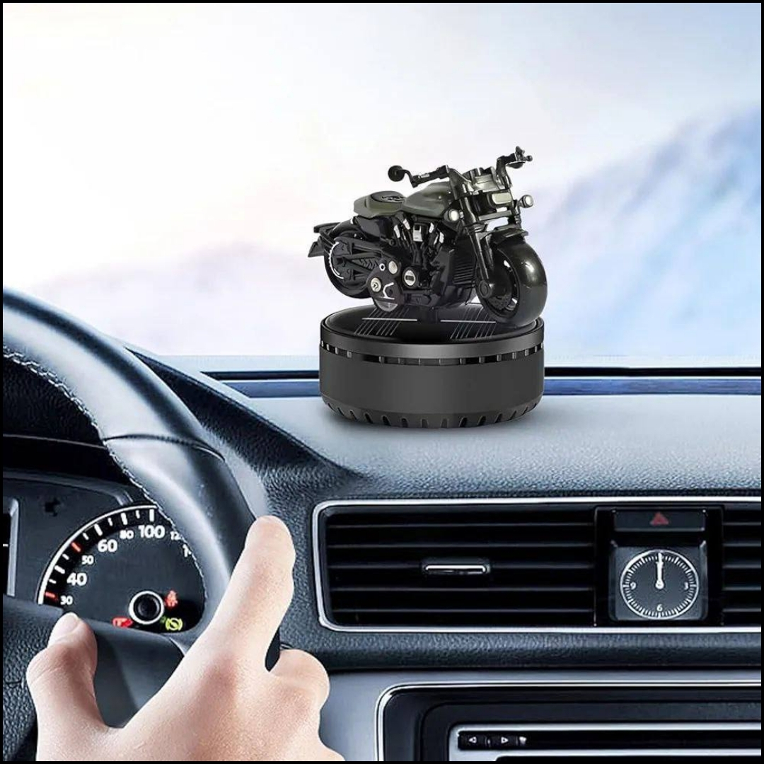 Funcionamiento Solar: El ambientador funciona con energía solar, haciendo que la moto gire sin necesidad de baterías. Es una opción ecológica y de bajo mantenimiento.