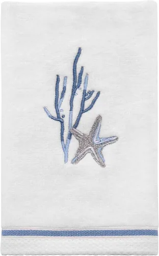 100 % Algodón INCLUYE: (1) Toalla para dedos CALIDAD Y CERTIFICADO: Fabricado con 100% algodón, exclusivo de dobladillo y adornos. Fabricación OEKO-Tex Standard 100 para tu seguridad. Fácil cuidado: lavable a máquina, secar en secadora a baja temperatura EL LOOK: Diseño tradicional costero con iconos costeros de conchas de vieiras, estrellas de mar y coral abanico en tonos de azul y beige. COLECCIÓN: Mezcla y combina con otros accesorios de la Costa Abstracta: dispensadores de jabón, cortinas de ducha y ganchos, vasos, fundas de pañuelos y más.