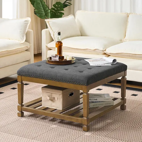 Pregunta sugerida sobre Befurtori Mesa de centro otomana cuadrada grande, otomana tapizada de lino sólido con estante de madera maciza, mesa de centro copetuda ¿Este producto sí me sirve para lo que necesito?