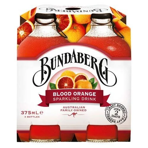 bundaberg Blood Orange Sparkling Fruit Drink 4-pack fabricado en Australia Fabricado en Australia por el popular cerveza de jengibre Makers bundaberg Craft prepara con real sangre oragnes. incluye cuatro botellas de 375 ml (12,7 fl oz) Gran sobre hielo o en su cóctel favorito, hace un gran Peach Moscow Mule. Los buques en contenedores de poliestireno para un envío seguro de protección (cuando se ordenó desde solly la salud de la tienda)