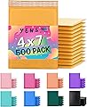 Yens Sobres de burbujas Kraft de 4 x 8 pulgadas, paquete de 500 bolsas adhesivas para envío, sobres acolchados para envío, correo, embalaje, espacio