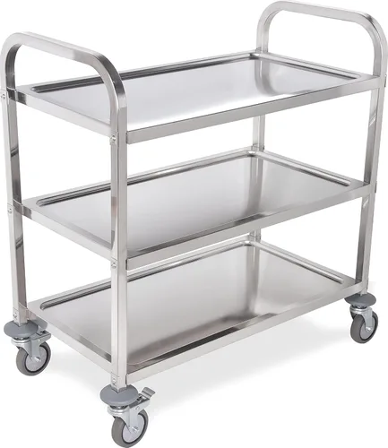El carrito de varios niveles proporciona un amplio espacio para almacenar y transportar una amplia variedad de artículos Tres estantes hechos de acero inoxidable de alta calidad para mayor durabilidad y longevidad Las ruedas giratorias hacen que el carro sea fácil de maniobrar y transportar Los parachoques de impacto protegen el carro de daños durante el transporte Adecuado para una variedad de aplicaciones, incluyendo oficinas, almacenes, restaurantes y hogares