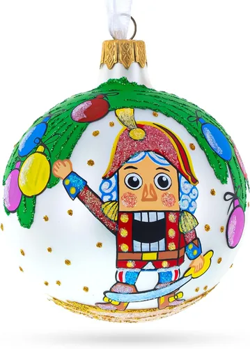 Cascanueces y árbol de Navidad soplado bola de cristal adorno 3.25 pulgadas