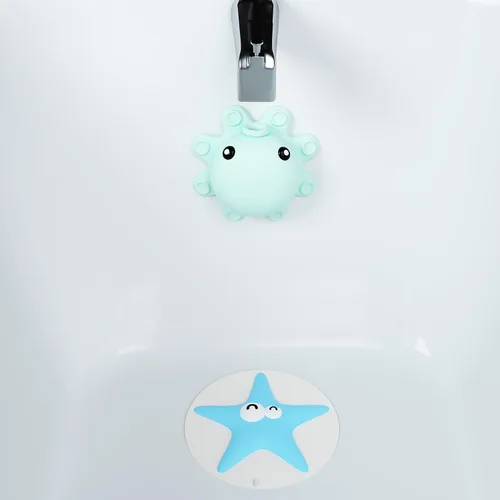 Cubierta de desbordamiento de drenaje de pulpo verde acuático + tapón de drenaje de bañera Seastar azul, de silicona