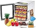 Haz aperitivos saludables bajos en calorías: con este deshidratador de alimentos, puedes secar una variedad de verduras, frutas, carnes, flores y otros alimentos, bloqueando fácilmente los minerales y vitaminas en los alimentos. Retiene los nutrientes de los alimentos en sí sin agregar todo tipo de aditivos alimentarios, por lo que es más saludable en comparación con los bocadillos de la tienda. Eficiencia energética: Con 800 vatios de potencia, puede lograr los resultados de secado deseados en menos tiempo, lo que es eficiente y ahorra energía. Gran capacidad: tiene 10/12 bandejas y cada bandeja mide 11.81 x 11.02 pulgadas/11.42 x 11.42 pulgadas, por lo que tiene un buen espacio de expansión para secar varios alimentos al mismo tiempo. Visibilidad del proceso: Con una puerta frontal de vidrio y luces LED incorporadas, le permite vigilar el proceso de secado y detectar cambios sutiles en su comida a medida que se seca. Duradero: está hecho de construcción de acero inoxidable de doble capa, que es muy resistente. Las bandejas también son resistentes al óxido y se pueden utilizar durante mucho tiempo. Seguro y fiable: la bandeja está hecha de acero inoxidable 304 de grado alimenticio y no contiene BPA, por lo que no tienes que preocuparte por la higiene de los alimentos. También tiene una función de apagado automático y protección contra sobrecalentamiento para tu tranquilidad. Temperatura y tiempo ajustables: La temperatura de secado se puede ajustar entre 86.0-194.0 °F o 86.0-176.0 °F. El temporizador se puede ajustar a 32.9 °F. El temporizador se puede ajustar entre 0,5 y 24 horas. Por lo tanto, este deshidratador de alimentos puede cumplir con una amplia gama de trabajos de secado de alimentos. Excelente efecto de secado: adopta una estructura de acero inoxidable de doble capa, que puede aislar mejor el calor externo y evitar la pérdida de calor. Los 2 ventiladores grandes integrados con tecnología de circulación de flujo de aire de 360° garantizan una distribución más uniforme del calor, secando los alimentos de manera más uniforme y rápida. Bajo nivel de ruido: el sistema de flujo de aire horizontal funciona de forma estable con un nivel de ruido de menos de 48 decibelios, por lo que no tiene que preocuparse por escuchar el ruido al secar bocadillos caseros. Fácil de operar: la parte delantera de la máquina tiene un panel de funcionamiento LED transparente. Todo lo que necesitas hacer es enchufarlo, presionar el botón de encendido/apagado y ajustar la hora y la temperatura para comenzar a secarse. Fácil de limpiar: la bandeja se puede sacar y poner en el lavavajillas para su limpieza. Por lo tanto, solo necesita limpiar el interior y la superficie de la máquina con un trapo. Información detallada: Este deshidratador de alimentos viene en un lujoso esquema de color negro y plateado con luces LED incorporadas. Aspecto elegante: este deshidratador de alimentos viene en un lujoso y robusto esquema de color negro y plateado y tiene luces LED integradas para dar a tu hogar una sensación elegante y tecnológica. Disipadores de calor: Hay múltiples disipadores de calor en la parte posterior de la máquina, que ayudan a disipar el calor generado a tiempo y prolongar la vida útil de la máquina. Manija de apertura: La puerta de vidrio está diseñada con una manija ancha, que es conveniente para abrir y cerrar la puerta de vidrio, poner y sacar alimentos. Asa de transporte: hay un asa de transporte negra en cada lado de la máquina, que es conveniente para que puedas llevar y mover. Pies antideslizantes: Hay cuatro pies antideslizantes en la parte inferior de la máquina, que pueden evitar eficazmente que la máquina se deslice en la plataforma lisa. Alcance aplicable: Puede secar todo tipo de verduras, frutas, carnes, flores y otros productos alimenticios, adecuados para uso doméstico o comercial.