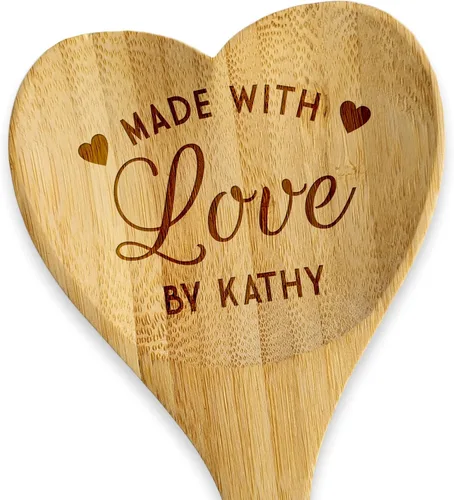 Una espátula de bambú de madera en forma de corazón personalizada | La cuchara en forma de corazón hace que cocinar no solo sea práctico, sino también un placer, añadiendo un toque de amor a cada comida que prepares. 6 diseños atractivos para elegir. Algo para todos: mujeres, hombres, madres, papás, mejores amigos, niños, niñas y niños Este utensilio de bambú no rayará tus ollas o sartenes, es sostenible, duradero e incluso tiene un pequeño agujero en forma de corazón para colgar. Para empezar a cocinar con amor, simplemente haz clic en el botón Personalizar ahora para realizar un pedido Tenemos una variedad de artículos personalizados para cada ocasión: Día de la Madre, Día del Padre, mejor papá de todos los tiempos, inauguración de la casa, aniversario, graduación, Navidad, cumpleaños, día de San Valentín, boda, baby shower, despedida de soltera, abuela, GiGi, Nana, Grammy, MiMi, Nonna, Madre, mamá, Pops, Papa, Poppy, abuelo, papá, hermana, hermano, amantes de los perros, damas de gato, dueños de mascotas. Escriba la barra de búsqueda de Amazon, By-Stockingfactory, ven a vernos!