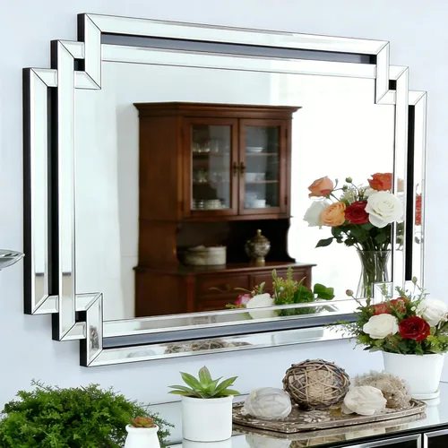 Diseño de piezas de vidrio: Algunas de las piezas de vidrio alrededor del espejo decorativo captan la luz y se ven realmente hermosas y preciosas. Los bordes están espejados junto con el espejo de cristal central y se ve impresionante. Absolutamente fabuloso! Borde biselado: Cada pieza del espejo está ligeramente biselada alrededor de los bordes, lo que le da un aspecto elegante. La naturaleza reflectante del espejo para comedor es impresionante y el diseño es diferente a cualquier espejo que hayas visto antes. Los lados sin marco se ven tan modernos, excepcionales. Llamativo: este espejo decorativo es un llamador de atención, por lo que sorprende a todos los que entran en tu casa. El espejo de entrada es una forma rentable de agregar dinamismo y brillo a habitaciones con decoración moderna o de transición. Qué glamurosos, únicos y caros se ven. Espacio aplicable: El elegante y glamuroso espejo de 24" x 36" podría hacer que cualquiera de los espacios de tu hogar se vea mejor: sala de estar, baño, dormitorio, entrada, vestíbulo o pasillo. Iluminará tus habitaciones y le dará a tus habitaciones un aspecto elegante y lujoso de alta gama. Colgante vertical u horizontal: espejo de decoración de pared más los ganchos en D en la parte posterior para colgar vertical u horizontal. La placa trasera de madera resistente hace que el espejo sea más sólido y abre tu habitación de manera increíble. El espejo rectangular viene con los accesorios necesarios para colgar el espejo. Aviso: Por favor, vea el tamaño del espejo y decida si necesita el espejo de vidrio. Si hay alguna pregunta, no dude en hacérnoslo saber.