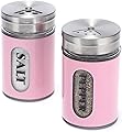 Salt and Pepper Shakers Stainless Steel and Glass Set with Adjustable Pour Holes (Pink)