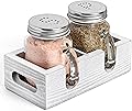 Mason Jar Salt and Pepper Shakers - Glass Shaker Set with Wood Holder Caddy, Easy to Clean & Refill for Farmhouse Kitchen Table, Home and Gifts