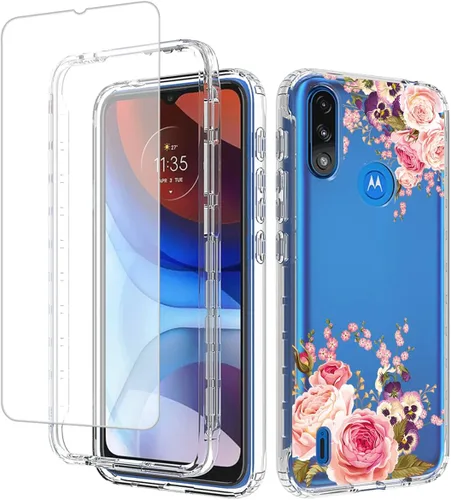 ¿Para qué sirve Funda para Moto E7 Power/Moto E7i Power XT2097 con protector de pantalla de vidrio templado, cuerpo completo transparente con diseño floral, fundas?