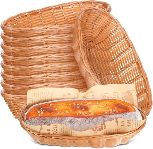 GANAZONO 10 cestas de pan de ratán, ligeras, transpirables, tejidas para servir pan, frutas, aperitivos, conservación de alimentos, 8.85 x 4.13 x