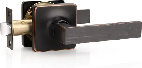 GOBEKOR Paquete de 1 manija cuadrada para puerta de paso de bronce aceitado para puerta de pasillo, armario, cerradura de puerta, perilla de puerta