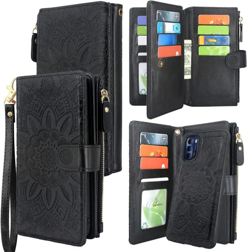 Pregunta sugerida sobre Harryshell Funda de piel con cremallera magnética desmontable y bolsillo para monedas, 12 ranuras para tarjetas, correa de muñeca para Motorola Moto ¿Este producto sí me sirve para lo que necesito?
