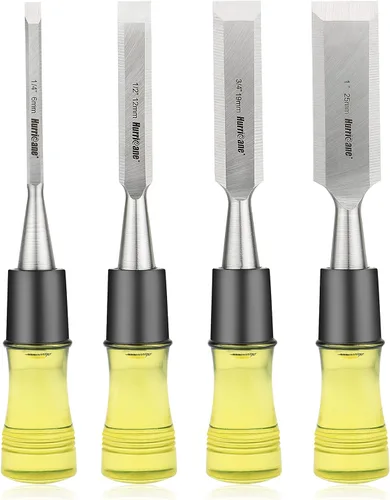 HURRICANE Juego de 4 cinceles de madera para carpintería. Cuchillas de borde biselado de acero CR-V con tapas de seguridad. Agarre extra grande,