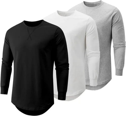 JMIERR Mens 3 Pack Cotton Hipster Hip Hop Longline Crewneck T-Shirt