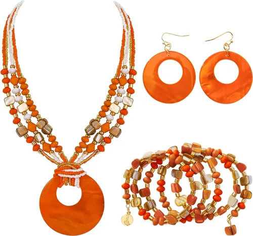 Juego de joyas para mujer, 4 piezas de cuentas gruesas de la señora Roper para mujer, collar de concha colorido bohemio de múltiples hebras para