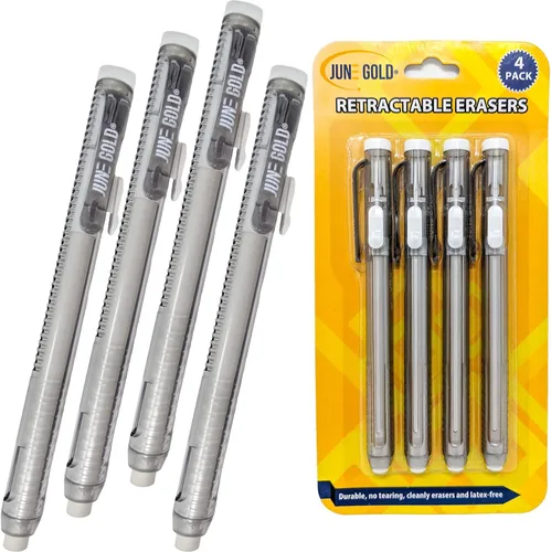 June Gold Paquete de 4 borradores mecánicos retráctiles, sin látex, vinilo blanco y borrado de precisión