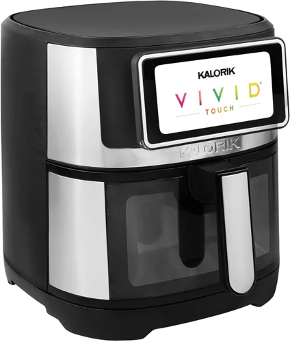 Bienvenido al futuro de la cocina con la freidora de aire Kalorik VIVID TOUCH de 5 cuartos de galón con pantalla táctil de alta resolución. Esta no es cualquier freidora de aire; es una puerta de entrada a un mundo donde la innovación se encuentra con facilidad. Navegue sin esfuerzo a través de una pantalla táctil innovadora y de alta resolución, seleccionando el plato deseado con un simple toque: es como magia al alcance de su mano. Con unos impresionantes 202 ajustes preestablecidos que abarcan 12 categorías de alimentos, esta freidora de aire no solo cocina; revoluciona la forma en que abordas la hora de comer. Para agilizar tu proceso de cocción, la freidora de aire Kalorik VIVID TOUCH te permite personalizar los ajustes según el tipo de alimento, el corte, el peso e incluso si está fresco o congelado, asegurando precisión y perfección con cada plato. Mantenga un ojo en sus comidas con la ventana de visualización y la luz interior, proporcionando un vistazo a la magia que sucede en el interior. Disfruta de una cocción rápida y uniforme hasta 400 °F sin la necesidad de exceso de aceite, haciendo que las comidas más saludables sean muy fáciles. Experimente un mundo de idiomas con soporte multilingüe en inglés, español, francés y mandarín, junto con la conveniencia de elegir entre Fahrenheit o Celsius. Mantente al tanto de tu juego de cocina con funciones como el recordatorio de agitación y la alerta lista, asegurando que nunca te pierdas el ritmo. No es solo un electrodoméstico de cocina, la freidora de aire Kalorik VIVID TOUCH es una adición elegante a tu espacio con su moderno diseño de acero inoxidable. La limpieza es muy fácil con la cesta apta para lavavajillas y la bandeja para crujientes, mientras que la espaciosa capacidad de 5 cuartos la hace perfecta para fiestas familiares o reuniones íntimas. Descubra este aparato de vanguardia, donde la excelencia culinaria se une a una comodidad sin igual.