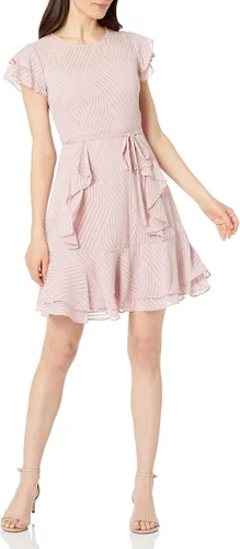 Karl Lagerfeld Paris Iconic Women's Geo Georgette Ruffle Dress, High quality fashion with a sleek and sophisticated look for all occasions