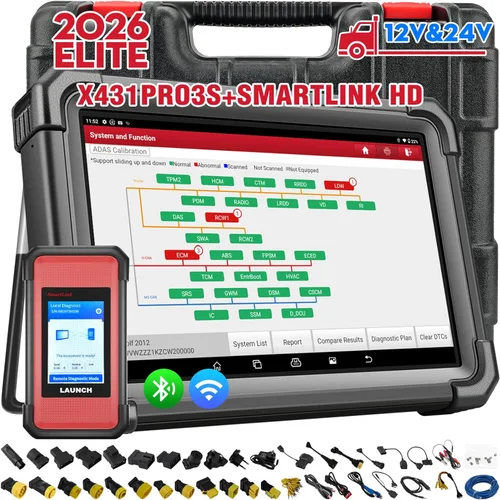La primera herramienta de escaneo avanzada de LAUNCH, compatible con vehículos de 12 V y 24 V. Diseño para vehículos comerciales y de pasajeros 2 en 1, funciona para automóviles/camiones/autobuses/remolques/excavadoras/motor diesel/camioneta/etc. Reprogramación J2534 con Smartlink C: reprogramación avanzada del fabricante original del equipo J2534, ayuda a acceder a datos directos en línea, reemplazar software/firmware existente en ECU, programa nuevas ECU y solucionar problemas controlados por software. Más de 60 funciones de reinicio de servicio + bidireccional + codificación ECU: esta herramienta de escaneo admite la codificación ECU y tiene más de 60 funciones de servicio de reinicio como SAS/EPB/TPMS/DPF/Oil/Brake/ABS Bleed, codificación de inyectores, etc. El mejor hardware avanzado con diagnóstico de todos los sistemas+pantalla de topología: es compatible con todos los sistemas de diagnóstico, incluyendo ENG, AT, ECM, TCM, ABS, SRS, BCM, BMS, TPMS, SAS, sistema de combustible, sistema de luz y más. Cobertura más amplia de vehículos de 12 V y 24 V + 24 idiomas: el escáner automotriz LAUNCH X431 PRO3S+SMARTLINK HD es una herramienta de escaneo todo en uno para automóviles de 12 V y camiones de alta resistencia de 24 V compatibles con CANFD y DOIP.