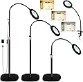 Lámpara de lupa de 12 aumentos con luz y soporte, lámpara de pie LED de aumento de NUEYiO con atenuación sin escalones de 3 colores, lámpara de lupa