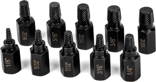 Múltiples tamaños incluidos: el juego de 10 extractores de tornillos LLNDEI incluye: 1/8", 5/32", 3/16", 7/32", 1/4", 9/32", 5/16", 11/32", 3/8", 13/32". Resistente y duradero: cada extractor de grado industrial LLNDEI está fabricado con CR-MO de alta dureza tratado térmicamente, mecanizado de precisión para resistencia a la corrosión y dureza superior. Tamaño grabado con láser de alta visibilidad para una identificación rápida. Nota: El zócalo de extracción está engrasado para evitar la oxidación. Extractor de fácil salida: las roscas internas del extractor de pernos hexagonales LLNDEI están diseñadas con una ranura en espiral izquierda para una mayor potencia de agarre. A medida que aumenta la resistencia, la ranura en espiral se incrusta a sí misma aumentando así la velocidad de roscado. Amplia aplicación: los extractores de tornillos LLNDEI eliminan tornillos congelados, rotos, pelados y dañados, tuercas, pernos, pernos, accesorios, tubos roscados y pasadores. Estos extractores te ayudarán a quitar incluso los sujetadores más duros de forma rápida y eficiente. Garantía de por vida: la calidad de los productos de la marca LLNDEI está garantizada, y ofrecemos una garantía de por vida en este juego de extractor de pernos fácil de sacar. No importa si encuentra algún problema, bienvenido a consultar con nosotros en cualquier momento, estamos 24 horas para su servicio dedicado!