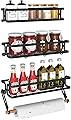 3 Pack Spice Rack Wall Mount With Paper Towel Holder and Hooks, Screw or Adhesive Hanging Spice Shelf,Space Saving Spice Organizer for Seasonings,