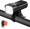 Luz de bicicleta para conducción nocturna, 2000 lm faro de bicicleta y luz trasera, múltiples modos, 3000 mAh USB C recargable impermeable LED