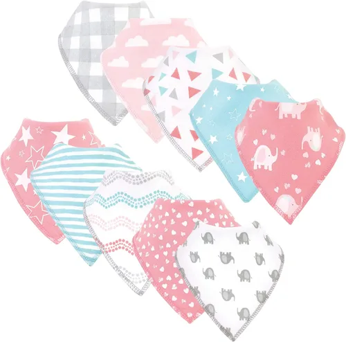 Conjunto de baberos bandana coordinados oc Fabricado con 100% algodón frontal y 100% forro polar en la parte trasera Tela multicapa que absorbe babas y derrames y es suave para la piel del bebé Óptimo para el uso diario Paquete asequible y de alta calidad