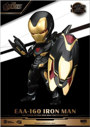 Cuenta con Marvel Avengers Iron Man edición limitada, figura de acción Egg Attack con licencia oficial de Beast Kingdom Función de iluminación para ojos y pecho Incluye tres pares de manos reemplazables, un jetpack, nano espada, canon y escudo, un juego de accesorios de llama y un soporte exclusivo Aproximadamente 6 pulgadas de alto y hecho de material PVC y ABS ¡Limitado a solo 1.000 unidades en todo el mundo!