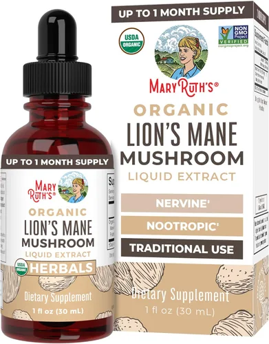 MaryRuth Organics Suplemento de Hongo Melena de León, Suministro de Hasta 1 Mes, Extracto Nootrópico USDA Orgánico de Melena de León, Gotas Líquidas