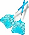 Wapodeai Paquete de 2 matamoscas resistente, matamoscas telescópico, mango de acero inoxidable para matamoscas (azul)
