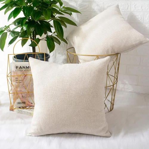 MERNETTE Funda de cojín cuadrado de chenille, suave, decorativa, para decoración del hogar, para sofá, cama, silla, sillón, paquete de 2
