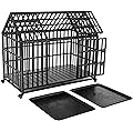 Jaula indestructible para perros de 52 pulgadas, XL / XL con techo abierto, 4 ruedas con bloqueo y 2 bandejas, jaula de impacto a prueba de fugas