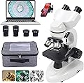 SELFIE CAT Microscopio de laboratorio para la escuela, microscopio compuesto binocular 200X-5000X Ampliación para adultos, kit de microscopios con