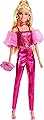 Muñeca Barbie Deluxe Estilo #5 en atuendo rosa metálico, cabello rubio, corsé brillante y pantalones brillantes con accesorios como collar de rosas