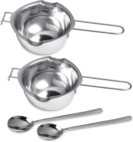 Bonita idea de regalo: elegante y práctico, hermoso diseño, sólido y duradero para uso a largo plazo. Un regalo impresionante para tu familia y amigos. Especificaciones: Material: acero inoxidable. Tamaño de la maceta: aprox. 9.6 x 5.3 x 2.2 pulgadas. Cuchara: aprox. 7.16 x 1.4 pulgadas Color: Plata Contenido del paquete: 2 x olla doble caldera de 13.5 fl oz /14oz 2 cucharas. Nota: 1. Por favor, no coloques la olla de doble caldera en una estufa con la cocción a fuego desnudo. 2. La cantidad de agua de la olla inferior debe ser de aproximadamente 1/3 del cuerpo de la olla, no viertas demasiada agua. 3. Todas las dimensiones se miden manualmente. Puede haber errores menores, por favor entienda. Control de calidad estricto Cada pieza de producto ha sido cuidadosamente revisada antes del embalaje. Importante: 1. Comprueba el paquete si está en buenas condiciones. 2. Si tienes alguna pregunta sobre nuestro producto, no te preocupes y ponte en contacto con nosotros