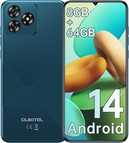 OUKITEL Teléfono celular C53 desbloqueado, 6.6" HD+ pantalla Waterdrop Android 14, 4300mAh Smartphone, 8GB+64GB/1TB Octa Core, 13MP cámara Azul