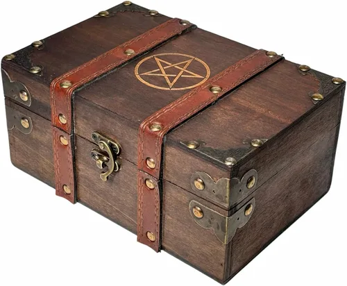 Diseño generoso y duradero: mide 8.3 x 5.3 x 3.7 pulgadas (8.3 x 5.3 x 3.7 in) con un grosor de tablero resistente de 0.2 pulgadas (0.2 in), hecho de madera contrachapada, cuero artificial y aleación para una calidad duradera. Encanto único acabado a mano: Cada caja cuenta con pintura manual, lo que garantiza una variación de color ligeramente única y un estilo auténtico y rústico de "efecto antiguo". Ideal para almacenamiento espiritual y coleccionable: Tamaño perfecto para organizar sus piedras preciosas, cristales, hierbas y pequeños artículos rituales. Versátil y multiusos: úsalo como una caja de recuerdos, joyero, caja de baratijas, caja de tarot, caja de escondite o una hermosa pieza de decoración de habitación de brujas. Organizador de herramientas de altar perfecto: amplio espacio para guardar tus herramientas esenciales de altar, incluyendo velas de hechizos, varillas de incienso, piedras de chakra y más.