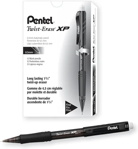 | Modelo | Pentel Lápiz automático Twist Erase EXPRESS tamaño de plomo de 0.020 in barril negro caja de 12 QE415A |