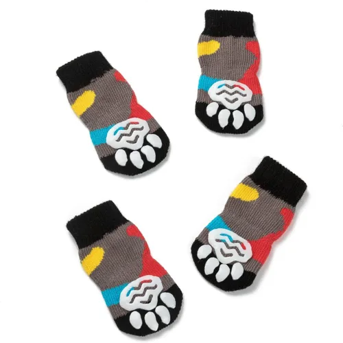 Material y tamaño: los calcetines para mascotas y protectores de patas están hechos de algodón de calidad profesional que será extremadamente cómodo y cálido. La imagen 2 es la tabla de tallas, longitud media del calcetín: 3.0 pulgadas, ancho: 1.4 pulgadas, entrada 1.2 pulgadas. Función: evita que los perros y gatos se deslicen en suelos de madera, protege los suelos y alfombras y sofás de arañazos en las uñas. Diseño: Impresión de gel de silicona antideslizante en las suelas para proporcionar tracción adicional, refuerzo de goma dentro de los calcetines para ser fácil mantenerse en pie. De moda: tomarás opciones de 5 patrones creativos de calcetines elegantes que a la vez son de moda e increíblemente duraderos. Atención: 4 calcetines en 1 juego, mide el ancho de la pata de tu mascota y consulta la tabla de tallas (imagen 2) para coincidir antes de comprar.