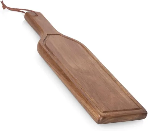 Sostenible: hecha de madera de acacia ecológica, la tabla Botella ofrece un toque de elegancia natural a tus presentaciones de queso. No solo se ve genial, sino que también es amable con el medio ambiente. Sin ensuciar: con una práctica ranura para jugo empotrada. Este diseño inteligente atrapa cualquier goteo o migas de tu queso, frutas o carnes, manteniendo tu área de servicio libre de desorden. Muéstralo: un elegante lazo de cuero anudado adorna la parte superior permitiendo un fácil almacenamiento colgante, manteniendo tu tabla al alcance y añadiendo un toque de encanto rústico a tu cocina. Pequeño pero poderoso: mide 4.8 x 15.4 x 0.8 pulgadas Diseñado para durar toda la vida: calidad del producto respaldada por la familia de marcas Picnic Time, una empresa familiar en California
