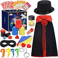 Skirfy Kit de mago, disfraz de mago para juegos de simulación, trucos de magia para niños de 6 a 8 años, juego de magia para principiantes, regalo