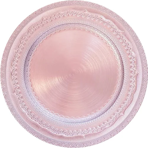 Platos de carga de 13" de aluminio rosa, juego de 6 platos elegantes con relieve de encaje, platos de servidor redondos para plato de cena, juego de