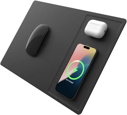 Carga inalámbrica Qi dual: carga simultáneamente dos dispositivos habilitados para Qi, como teléfonos inteligentes y auriculares, eliminando la necesidad de múltiples cargadores. Superficie lisa y espaciosa: proporciona un amplio espacio para un control preciso del mouse, mejorando tu productividad y experiencia de juego. Diseño elegante y funcional: combina estética moderna con funcionalidad práctica, por lo que es un complemento perfecto para cualquier espacio de trabajo. Base antideslizante: cuenta con una parte trasera antideslizante para mantener la alfombrilla de mouse en su lugar de forma segura durante el uso. Seguridad garantizada: equipado con un chip IC seguro para proteger sus dispositivos de sobrecarga, sobretemperatura, sobrecorriente y sobredescarga, asegurando una experiencia de carga segura.