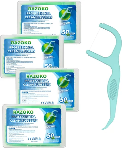 RAZOKO Púas de hilo dental extra fuerte, palillos de dientes de menta fresca, 200 unidades